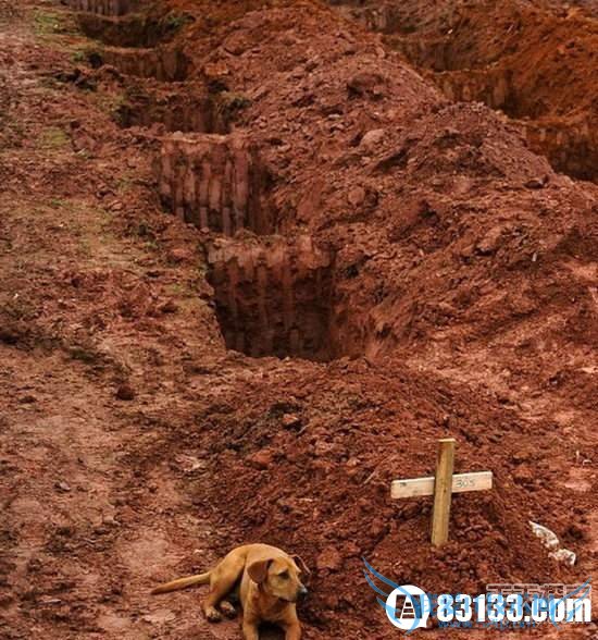 一只狗的主人在泥石流中死亡,这只狗在墓前守了2天2夜。(里约热内卢)