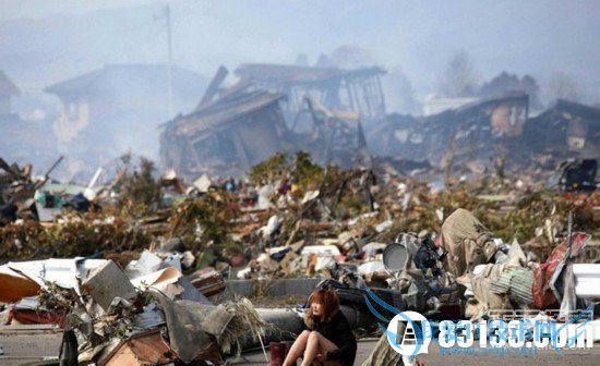 一位在 2011 年日本东北海啸中失去家园的女性,坐在瓦砾中哭泣 by Asahi Shimbun, Toshiyuki Tsunenari /AP