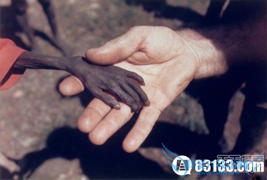 卡拉莫贾,乌干达,1980年4月。1980年世界新闻摄影奖:麦克威尔士,英国。饥饿的男孩和一名传教士的手。