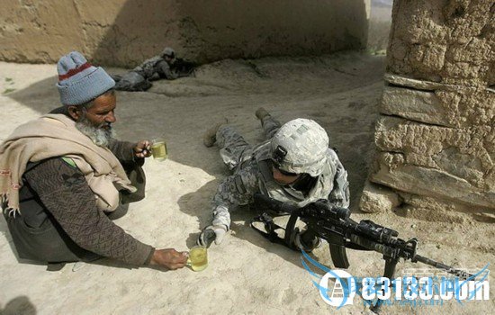 6、一个阿富汗男人给予士兵一杯茶 by Rafiq Maqbool / AP