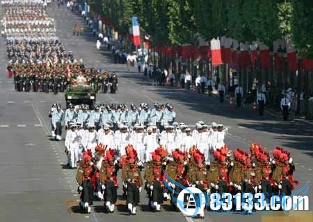 在法国,每年举行的小型阅兵和特别历史纪念日阅兵数不胜数,而最受重视的莫过于7月14日的国庆大阅兵了。每年的这个时候,法国都会广邀各国政要,举办隆重而盛大的阅兵仪式。身着礼服的士兵们组成的方阵,伴着高昂的乐曲穿过凯旋门,行进在香榭丽舍大道上。
