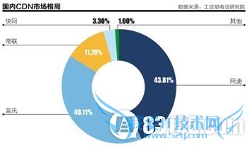 但是,中国电信的CDN产品并未能迅速崛起。目前,网宿、蓝汛在国内市场份额分别为43.8%、40.1%,二者是中国CDN市场的“双寡头”。
