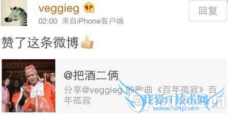 9月22日凌晨1:28,网友“把酒二俩”在微博分享王菲的歌曲《百年孤寂》并配上两张周星驰电影的截图,图中周星驰说:“人家郎才女貌,天生一对,轮到你这妖怪来反对?”半小时后王菲赞了这条微博,该网友起床后发现发了截图表达自己的惊喜。看来天后王菲也潜水在微博上刷评论,偶尔冒泡泄露了踪迹,不过据微博下面的评论所说,王菲后来又取消了这个赞,疑似是不小心点到。网友们纷纷留言:“哈哈哈可能她就是手一抖~”“这一个赞漂亮!这喧嚣浮躁的世界,不要说话,用心听就好。”