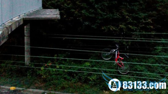 从现场的情况看,自行车是被从旁边的天桥抛上高架线的。 国际在线专稿:据德国《图片报》9月27日报道,当地时间9月26日周五早晨,德国亚琛市(Aachen)警方接到报案,从亚琛市通往比利时的一条铁路的高架电线出现故障。然而,当警方赶到现场进行检查时,却在高架线上发现了一辆自行车。