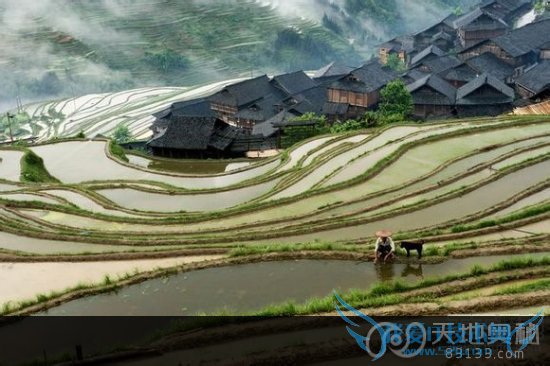 龙脊梯田在广西桂林龙胜县和平乡境内,龙胜梯田群规模宏大,全部的梯田分布在海拔300-1100米之间,最大坡度达50度,一层层从山脚盘绕到山顶,层层叠叠,高低错落。