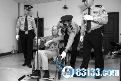 昨天上午10点,法警将坐在轮椅上的徐老汉推进法庭。他是通州区人,文盲,7年前患上脑血栓,脑部做了支架,之后一直腿脚不便。他还患有前列腺炎、高血压。