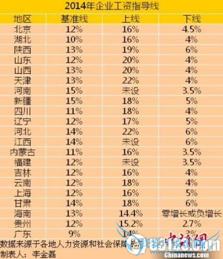 (原标题:21省份公布2014年工资指导线 平均涨幅下调(表))