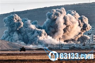 10月8日,叙利亚北部边境地区,美军战机对“伊斯兰国”武装发动空袭后,腾起巨大烟雾。