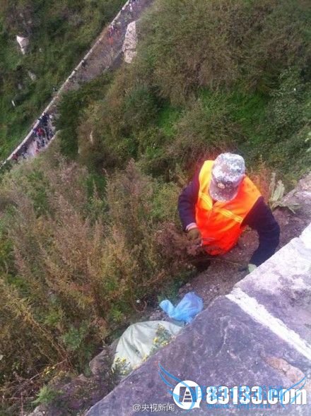 环卫工 【泰山”悬崖环卫工”:游客说我们不扔 你们不就失业了】泰山环卫工冒着坠崖危险,踩在栏杆边沿捡拾游客扔在树枝、山崖上的垃圾,几步之外就是望不见底的山谷。环卫工曾想制止游客乱扔垃圾,游客却说:我们不扔,你们不就失业了。