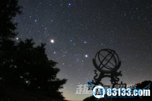 每当夜晚,你走出房间可能会在夜空中看到一颗非常明亮、略带微红色的物体,那就是火星。在本图中,御夫座群星中间的那颗最大亮点就是火星,恰好与夜幕下的中国浑天仪遥相呼应。浑天仪是清康熙年间钦天监官员南怀仁等制造,并于1669年进呈朝廷的。仪器由三层环架组合、上圆下方的造型,是中国传统浑天仪的表现形式,但在刻度和设计原理上却采用了西方法度及5世纪托勒密的地心说,可见这是中西科技融合的作品。由于这件浑天仪能够科学地演示日月交食之成因,一经进入宫廷使用,对于康熙朝再度应用西洋历法、改进中国测天仪器等都起了积极的作用。