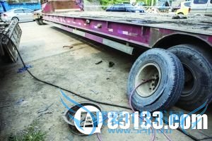 此外,记者还发现,这辆平板货车后面有两排十六个轮胎,总体上看,轮胎都是比较旧,不少轮胎表面花纹都磨损得很厉害。