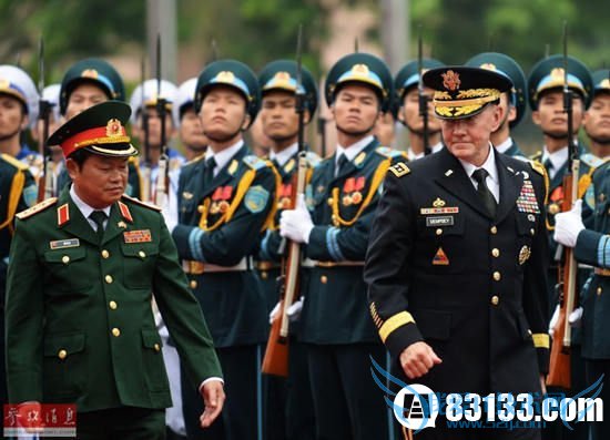 8月14日,美国参谋长联席会议主席邓普西出访越南。资料图 路透社9月23日报道称,美国正在讨论解除向越南武器禁运,有望于2014年年底看到结果。报道称,美国高官透露,第一批销售的武器将包括P-3侦察机,越南将用来监控和保卫其海岸线。