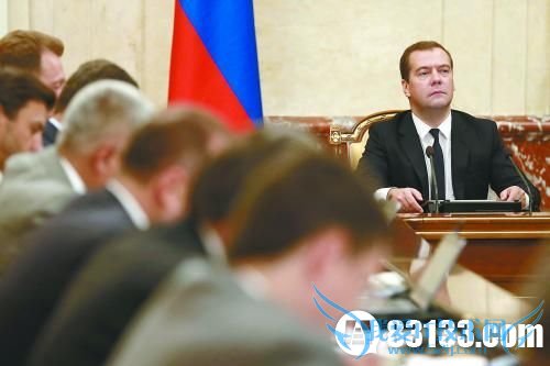 俄总理梅德韦杰夫8月7日主持政府会议时表示,对西方国家的制裁,俄罗斯被迫采取反击措施。 资料图 人民网10月21日电 据俄新网报道,俄罗斯动植物卫生监督局19日决定,临时禁止进口欧盟肉类副产品,理由是这些产品违反关税同盟动植物卫生检疫的要求。