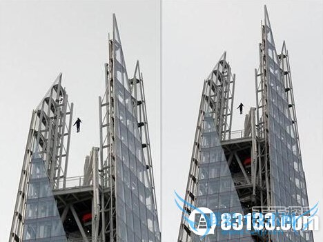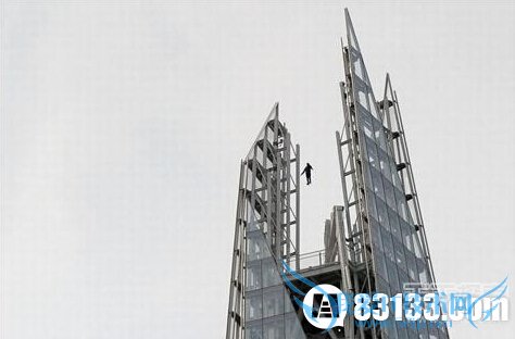戴纳魔悬浮在伦敦著名地标建筑,310米高的碎片大厦塔间图片