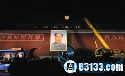 天安门城楼更换新毛泽东画像 新画像重1.5吨