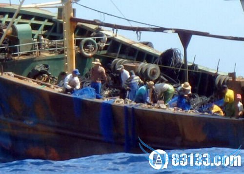 图为日本小笠原群岛渔业协会于2014年10月7日拍摄到的中国渔船。