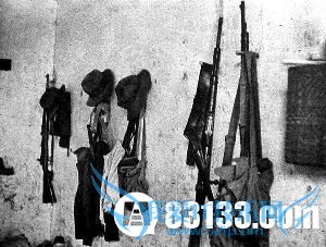 日军特工部队在长沙附近的住所墙上挂着中国的枪支