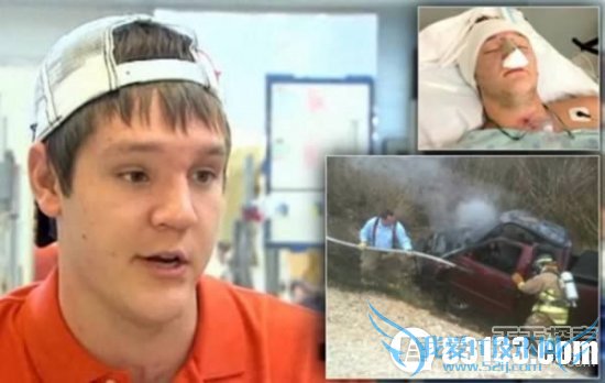 美国得克萨斯州21岁的大学生钱斯?博特因开着卡车发短信而掉下悬崖,造成脖子、脸部严重受伤,以及创伤性脑损伤的后果。
