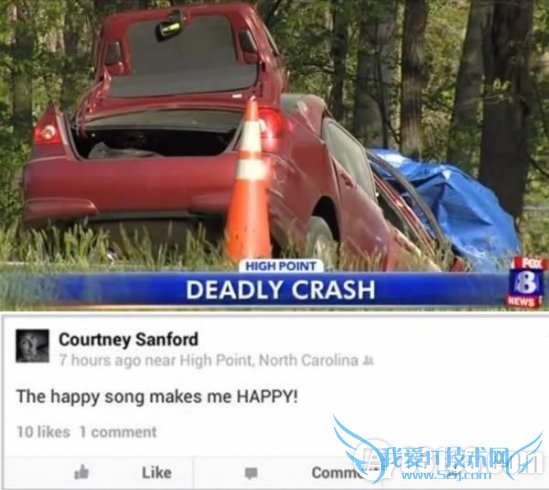 美国北卡罗来纳州32岁的女子考特尼桑福德在驱车前往工作地的途中遇难,车祸发生时她正在“脸谱”网上更新状态,上传自拍照。