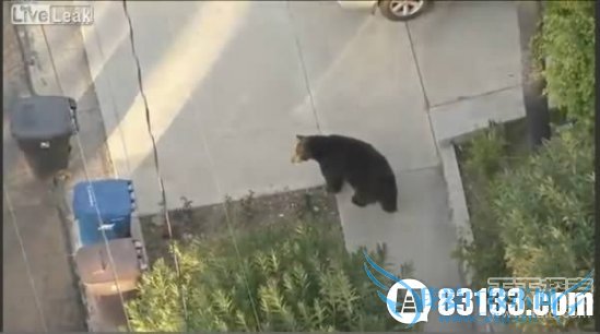 2012年,一只黑熊闯进了美国加州拉肯亚达社区的街道上。