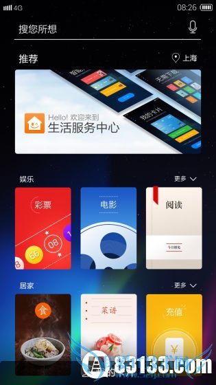 在新系统中,应用以一系列卡片的形式展现在屏幕上,有些卡片以常用的应用场景命名,比如看电影、餐饮、音乐等,直接点击卡片就可以进行电影票、餐馆的预定,并系统后续会向你推荐打车服务。
