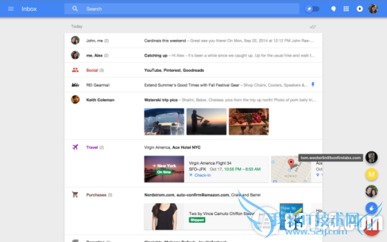 新浪科技讯 北京时间10月23日凌晨消息,谷歌周三推出了一种名为“Inbox”的电子邮件服务,能以更加用户友好地方式来组织电邮和显示信息,如约会、航班预订和包裹投递等。