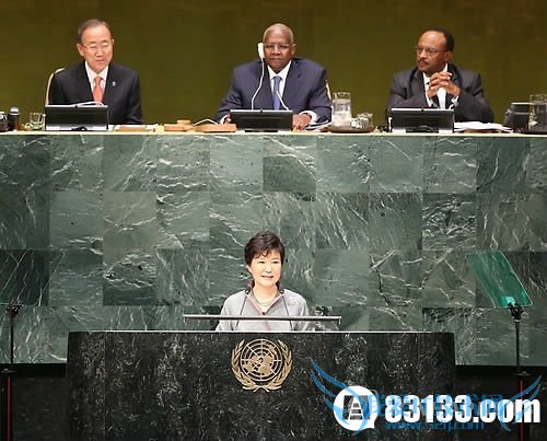 24日,韩国总统朴槿惠出席联合国大会并发表主旨演讲。(韩联社) 中新网9月28日电 据朝中社报道,朝鲜国防委员会政策局发言人27日发表谈话,点名批评朴槿惠,谴责其在联合国大会的讲话。