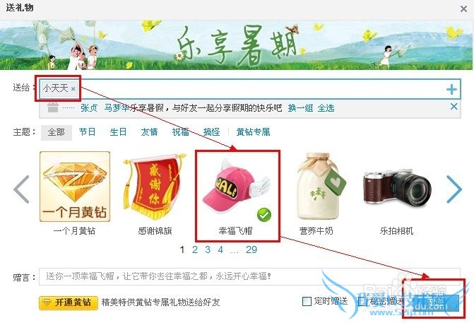 >选择你想要送给的对象,以及送的礼物,有些礼物需要收费哦,请注意。