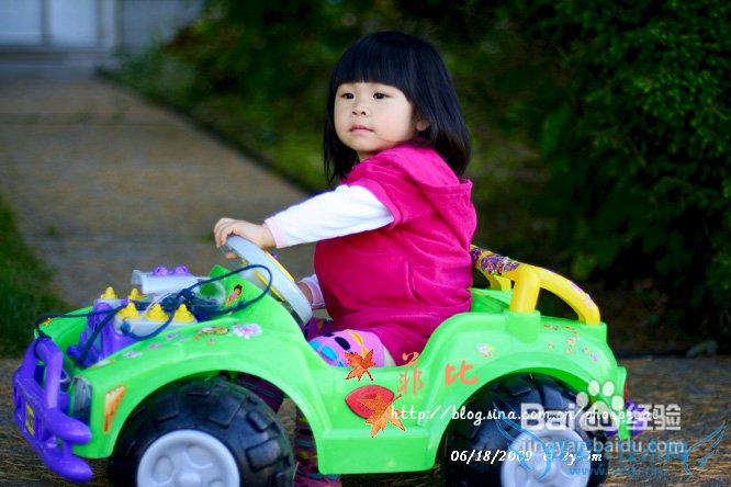 >在我们看水看得出神时,一位阿姨提着这车走来了,问我们要不要,说是她们家的小孩子大了,车也没地方摆了。车子还蛮新的,一点没破损,喇叭按钮都还会响。菲比看到就自己坐上去了。喜欢得很。