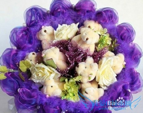 >9只小熊,寓意着爱情长长久久,爱你的 她,送给她永恒的爱意,让每一天都成为彼此的情人节, 让每一天都成为你们两人的节日!搭配着玫瑰的配饰,在“玫瑰”的花海中,每只小熊都是那么的安逸! 昨天看了个笑话,说的是201314算个什么,要是能在二十年后,对同一个人说203314那才是真正的牛。那么就从今年开始约定,二十年后给亲爱的她一 起过203314哦,嘿嘿,这个紫色的泰迪熊花束送给她 当作今年的情人节礼物吧,祝福你们的爱情长长久久哦!