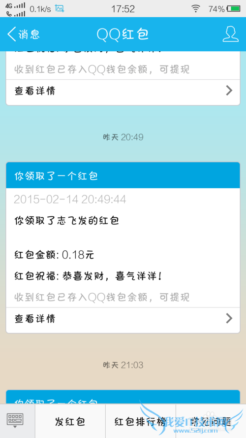 除了这些红包还有一些小红包,比如,QQ群里,支付宝中你的好友给你发了红包。希望大家都有个好手气,抢到多多的红包。