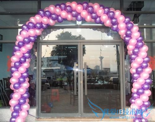 将PVC管穿过球链,弯曲成气球拱门。这样一个实用的彩球拱门就做好了。