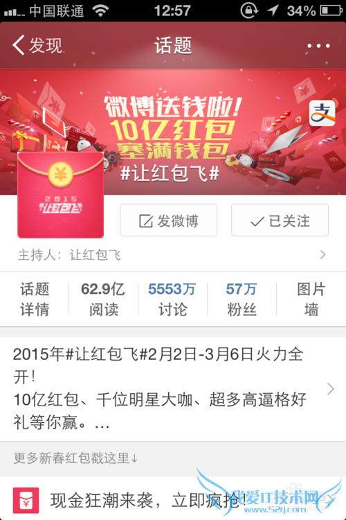 微博。打开微博后,找到红包,然后打开新春红包,进入就可以抢了。。每天可开红包的次数有限。亲们注意了。。