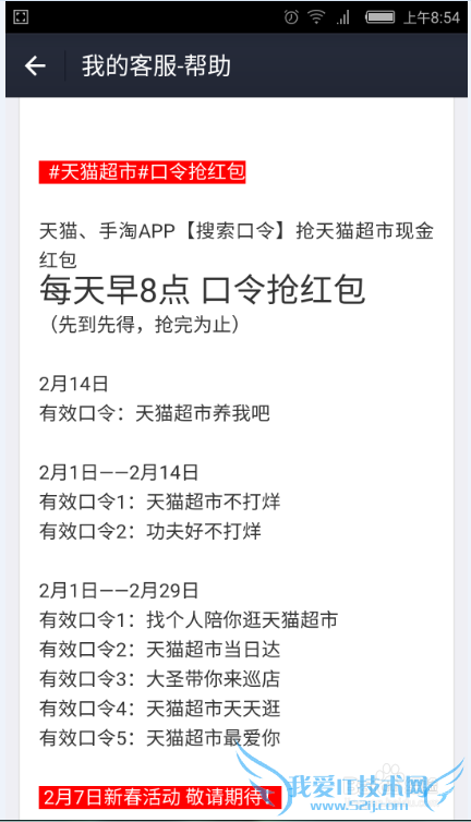 这里,我们可以看到有商家推出免单活动,还有抢红包的口令。把口令编辑成短语吧,方便我们抢红包的时候快速输入口令。