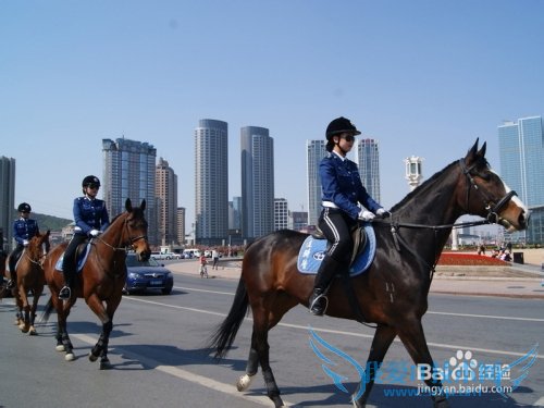 这是大连的一道独特风景,骑警主要负责大连繁华场所路段的巡逻、大 型商贸文体活动的执勤、首长外宾的礼仪警卫、礼仪展示等任务。 现在,大连现代博物馆特设有女骑警馆(见第 8 页),将女骑警用过的马鞍马刀、穿过的各式服装和获得的荣誉牌匾作长久性存展。每逢节假 日,每日上午 9:00-10:30 可在人民广场欣赏到大连女骑警们巡逻的英姿, 其余时间可到大连女骑警基地观看她们的日常训练和表演。