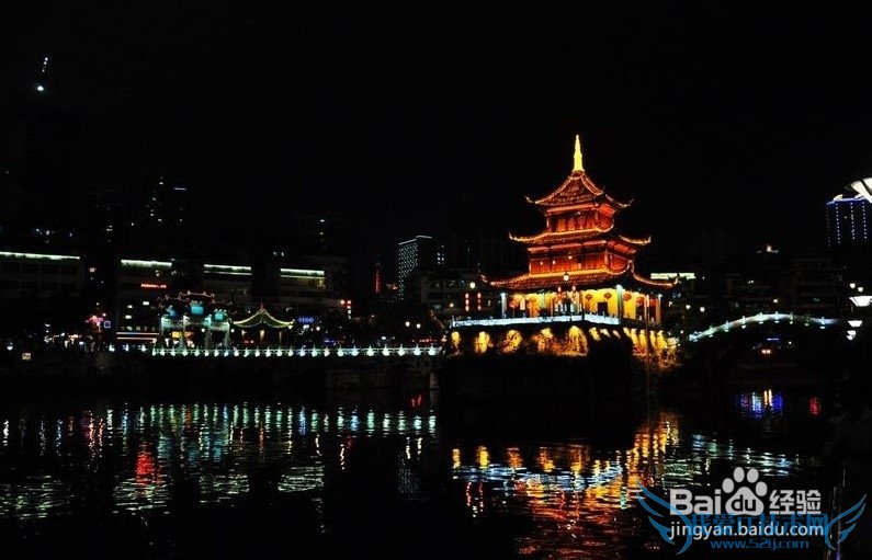经过一个多小时的飞行,即将到达贵阳龙洞堡机场,飞机准备降落。 到达龙洞堡机场后,搭车20分钟车程便到了我在和途旅行网上预订的贵阳凤凰酒店 环境很不错,服务很好,最主要的是位置比较好,搭车比较方便。放好行李稍作休息后,向宾馆前台服务员打听好甲秀楼怎么走,找个小店匆匆吃了碗牛肉面便出发了。从住宿的地方到甲秀楼不是很远,走过去顺便欣赏贵阳的夜景。
