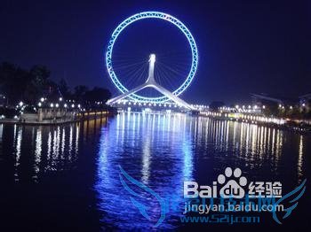 天津之眼,即天津永乐桥摩天轮,是世界上唯一建在桥上的摩天轮。摩天轮直径为110米,轮外装挂64个360度透明座舱,每个座舱可乘坐8个人,可同时供512个人观光。摩天轮旋转一周所需时间为30分钟,到达最高处时,周边景色一览无余,甚至能看到方圆40公里以内的景致,成为名副其实的“天津之眼”。