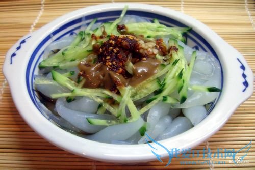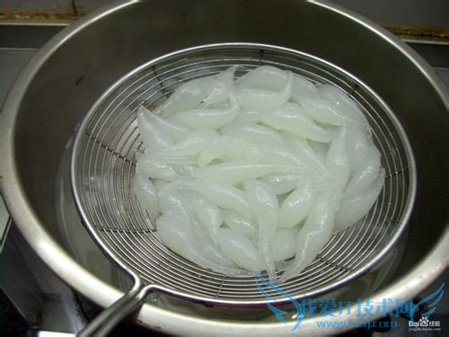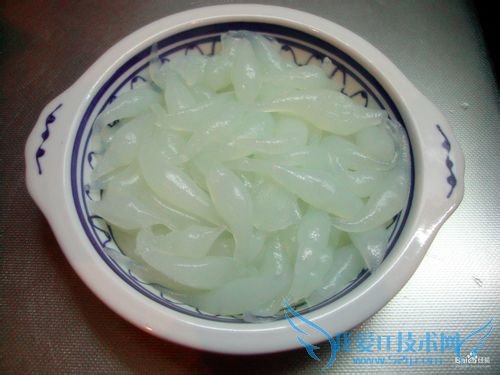 1买回来的粉鱼要在开水中焯一下,焯至粉鱼变透明了就可以了,焯完后马上放冷水盆中冲凉。