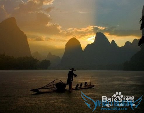 尤其是后者,晚饭后在阳朔码头上船,可容10人左右的中等机船,25元/人。开出几公里,然后来回在漓江上游弋,会有一到两叶小竹排表演鱼鹰捕鱼,游船侧开一盏小灯照明,江水清浅,可以清晰看到鱼鹰在水底潜游的景象,热爱大自然生命的人不容错过。看完表演后,游船停在一个浅滩上,渔公、鱼鹰均可让人照相留念。