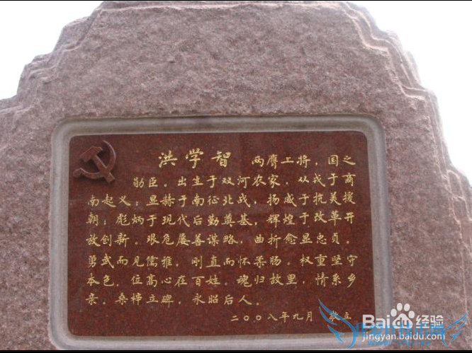 洪学智将军纪念碑位于安徽省金寨县革命烈士陵园内烈士纪念塔左后侧,背依西北方,面朝东南方。占地面积840平方米,主体工程包括纪念碑、功勋立柱、防护墙、悼念广场、绿化带等。