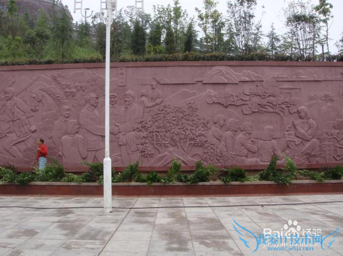 金寨县红军广场景区位坐落于有“将军县”之称的安徽省金寨县县城。每天都有上百人在哪里游玩欣赏。广场上有一面墙,墙上面雕刻着《刘邓大军》挺近大别山。【石材雕刻由本人参与工作》