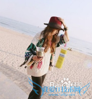 白色的针织上加入了小面积的印花图案,十分时尚百搭,简单搭配上黑色打底裤以及短靴就很甜美。再加上拼色礼帽更添个性魅力。