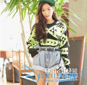 黑色与黄色组合的几何图案的针织衫,十分独特个性。搭配上高腰牛仔短裤,让身材显得无比高挑。再配上时尚鸭舌帽,搭出潮人风范。