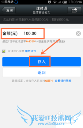4.输入要存入的金额,确认存入,小编就存进一百大元试试水,看看收益如何