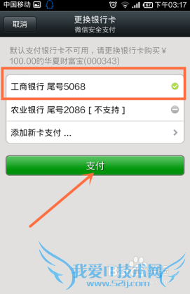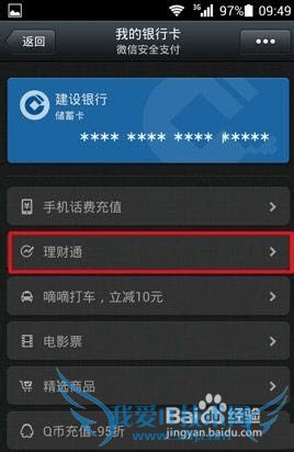 5.选择支付的银行卡 注意:信用卡不能用于支付理财通