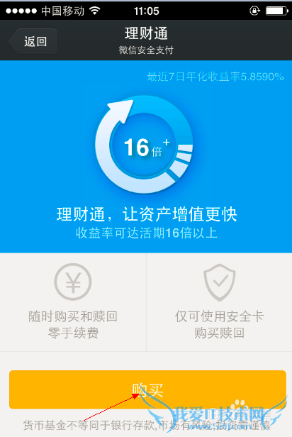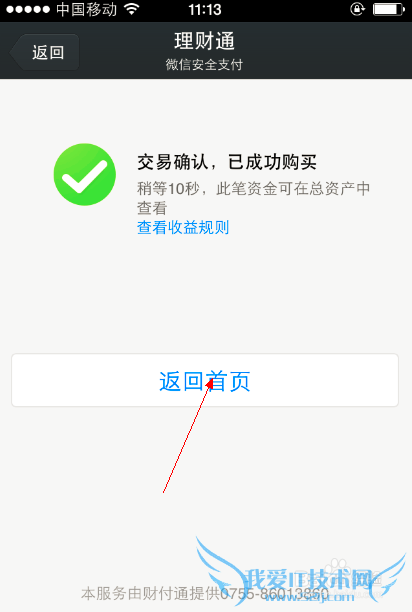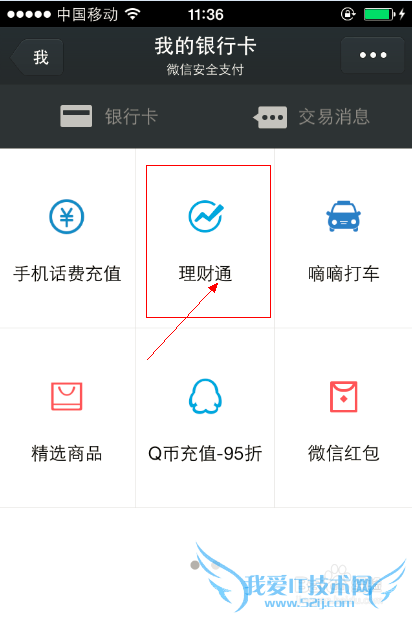 添加完成银行卡后,点击“理财通”。如下图所示。