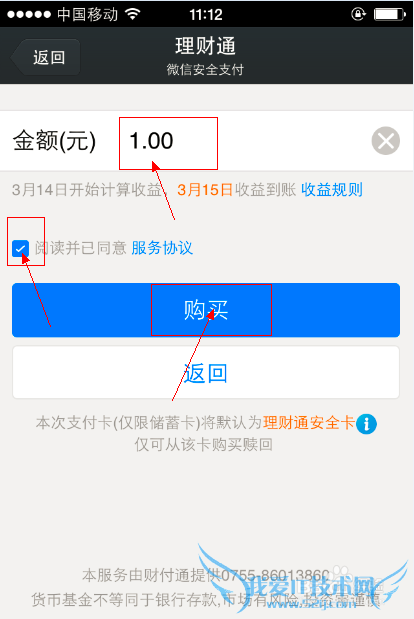 输入你要购买的金额。如图所示。完成后,点击“购买”。
