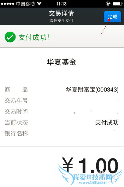 支付后,会出现如下图所示的内容。然后点击“完成”。