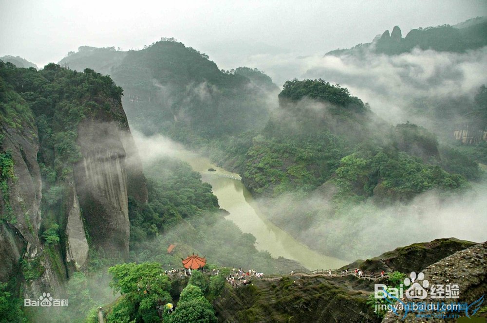 武夷山的自然景观奇峰、幽谷、洞穴等。著名有景点有九曲溪、流香涧、玉女峰、大王峰、三仰峰、天心岩、虎啸岩、鹰嘴岩,水帘洞、桃源、云窝、慧苑,天游观、万年宫,一线天等。