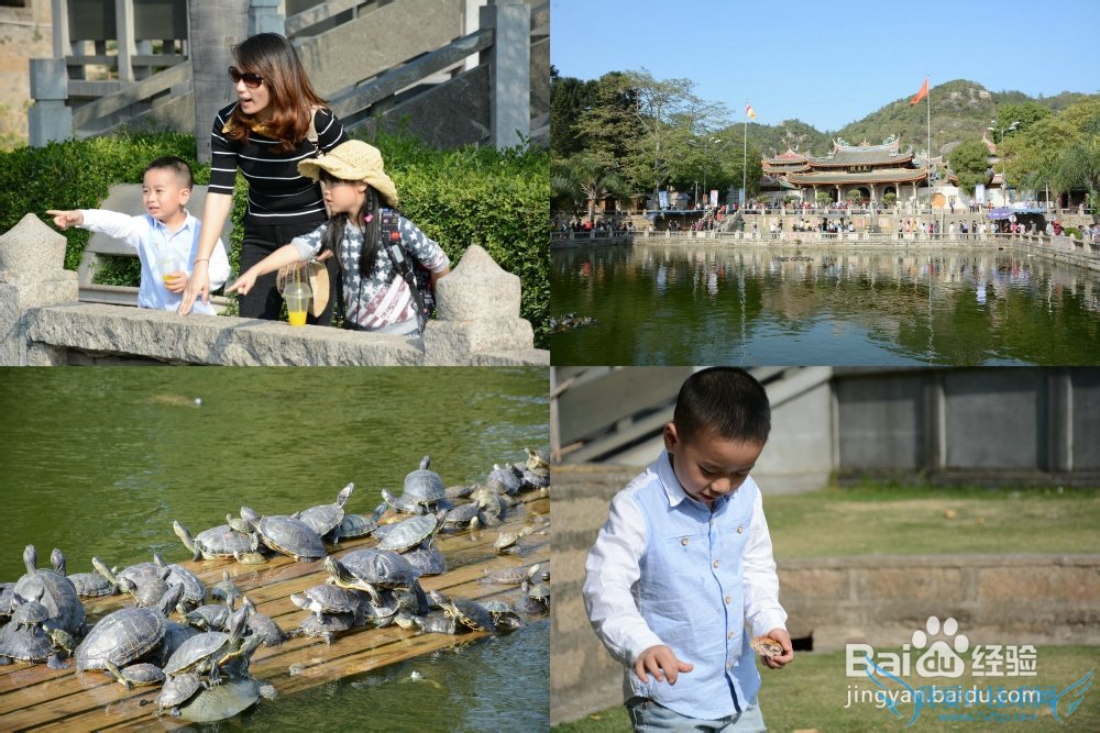 一进南普陀姐弟俩的视线瞬间被池里的景色吸引了,放生池里的乌龟真的是多的数不清,层层叠叠地晒太阳。寺庙的外景及没能爬上去的五老峰,DD跑到草坪上拿着面包打算吸引鸽子的注意~